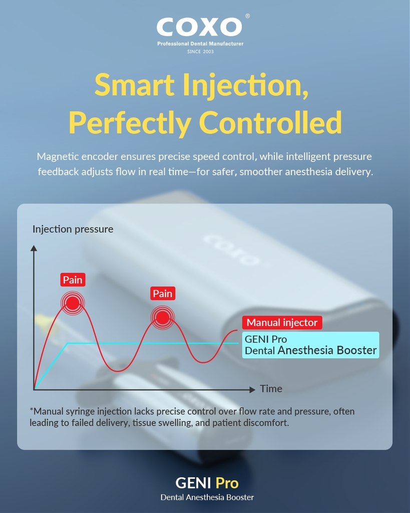 Phản hồi áp lực thời gian thực: Công nghệ thông minh tự động điều chỉnh dòng chảy dựa trên phản hồi áp lực, giúp quá trình đưa thuốc tê vào mô êm ái và an toàn hơn.