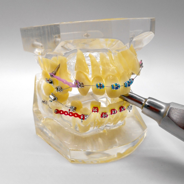 HÀM TƯ VẤN CHỈNH NHA MẮC CÀI KIM LOẠI BẰNG NHỰA TRONG, CÓ NHỔ RĂNG, FULL KHÍ CỤ
