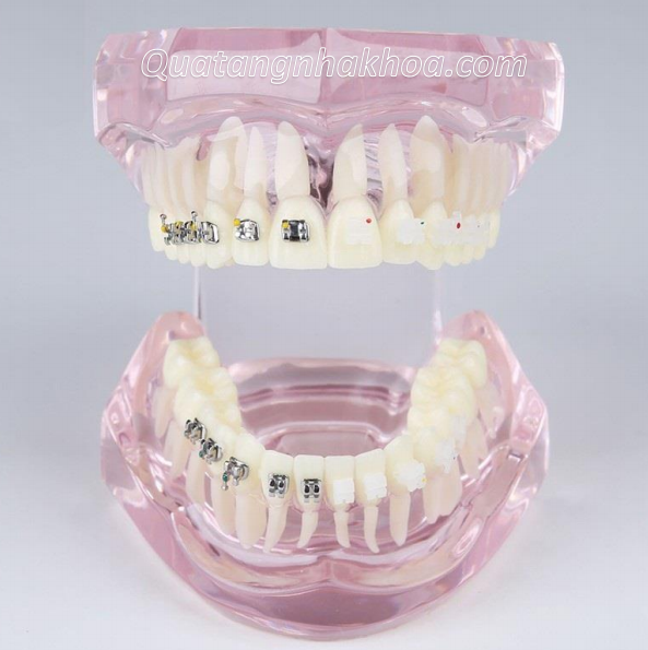 - Mắc cài sứ và mắc cài kim loại gắn trên răng.