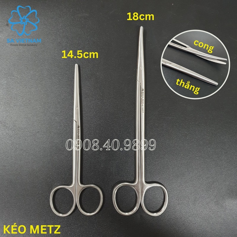 Kéo Metz đầu thẳng/ cong 14.5cm/ 18cm SA Medical (sản phẩm thép Đức)