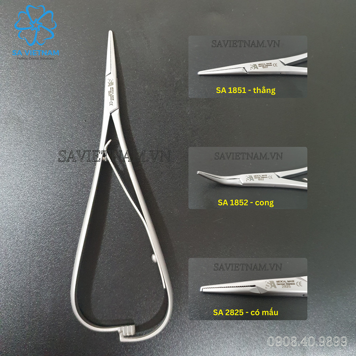 Đầu kim răng cưa giữ kim cực tốt, đặc biệt dùng khi đặt các dây buộc đàn hồi