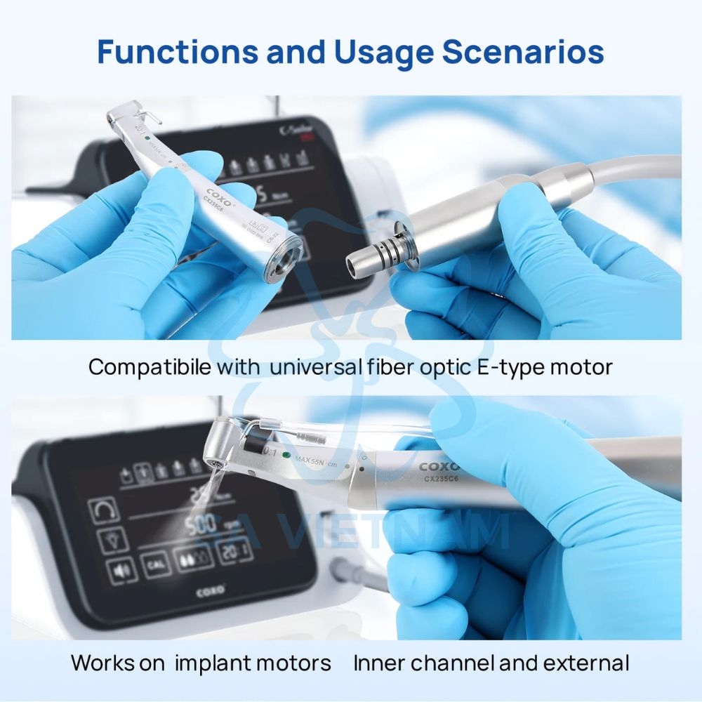 - Coxo là thương hiệu nổi tiếng trong lĩnh vực thiết bị nha khoa, được nhiều bác sĩ tin dùng.