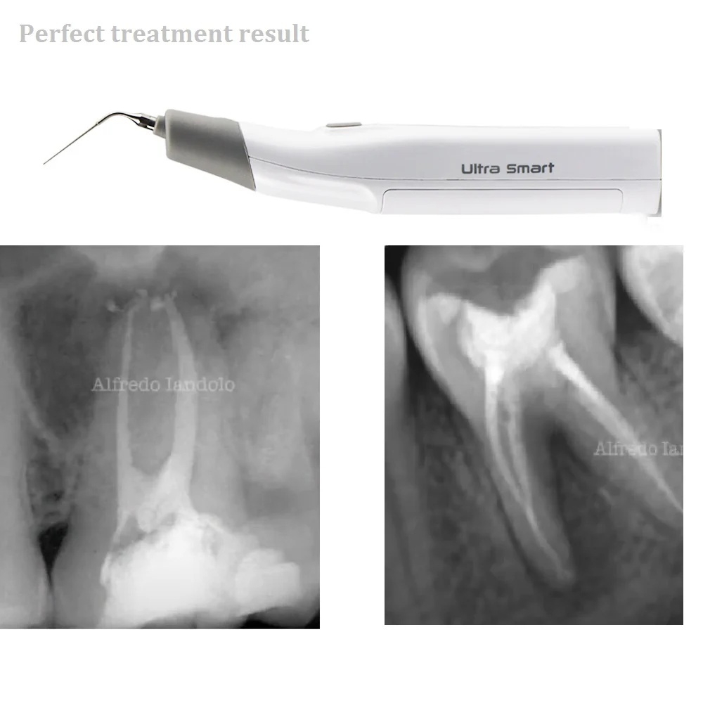 - Tần số siêu âm 38kHz: Tạo ra hiện tượng xâm thực (cavitation) và dòng chảy âm học giúp loại bỏ mảng bám, vi khuẩn và mùn ngà trong ống tủy một cách hiệu quả.