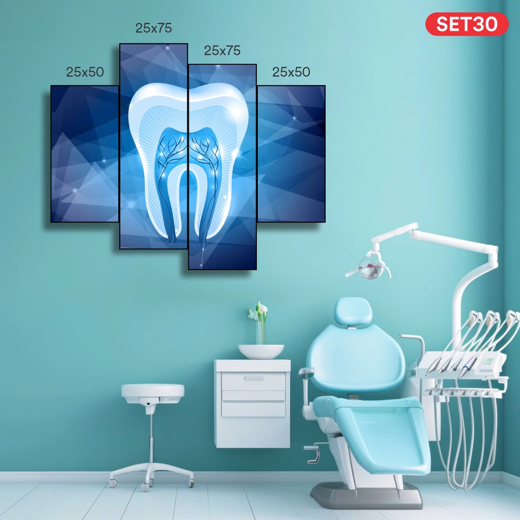 Set tranh nha khoa gồm 4 bức chất liệu TRANH GỖ TRÁNG GƯƠNG :