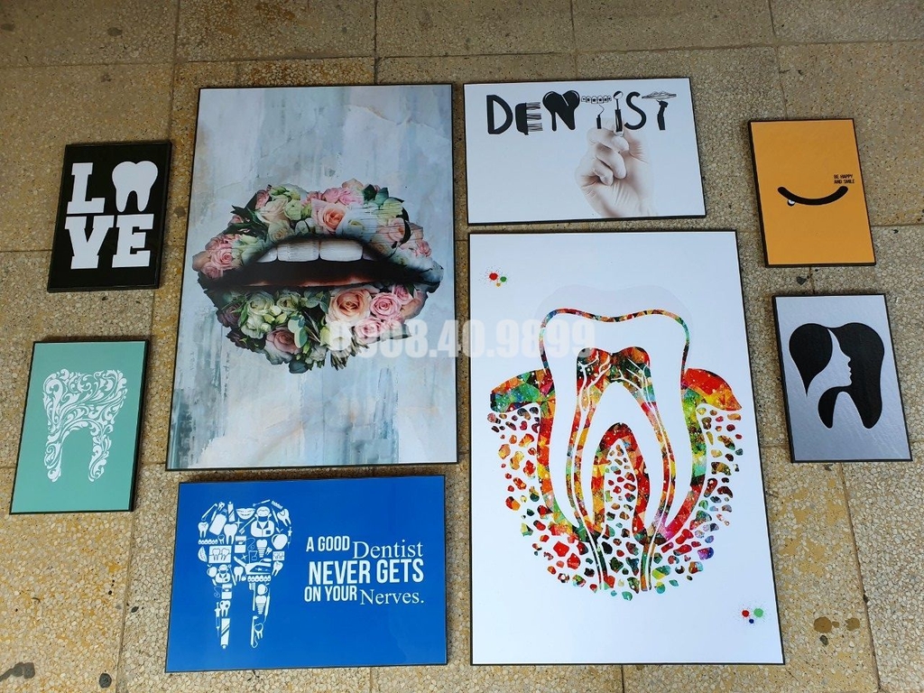 Set tranh nha khoa gồm 7 bức chất liệu TRANH GỖ TRÁNG GƯƠNG :