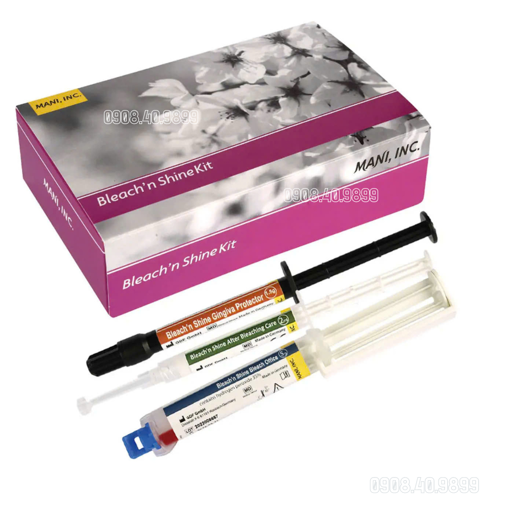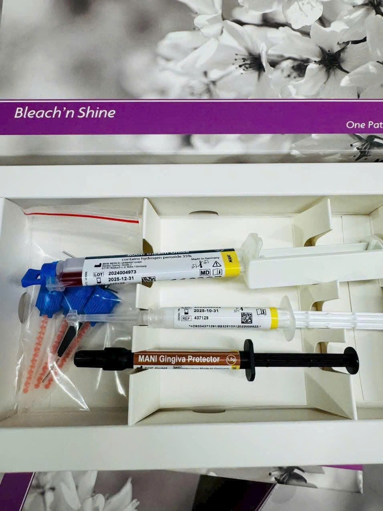 - 1 tuýp tẩy trắng MANI Bleach Office hoạt chất Hydro Peroxyde 35% 5gr và 3 đầu trộn thuốc tự động