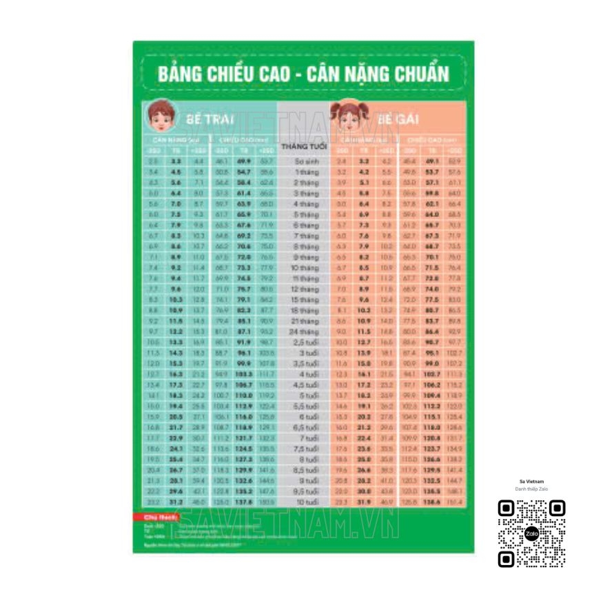 TRANH BẢNG CHIỀU CAO CÂN NẶNG CHUẨN CỦA TRẺ