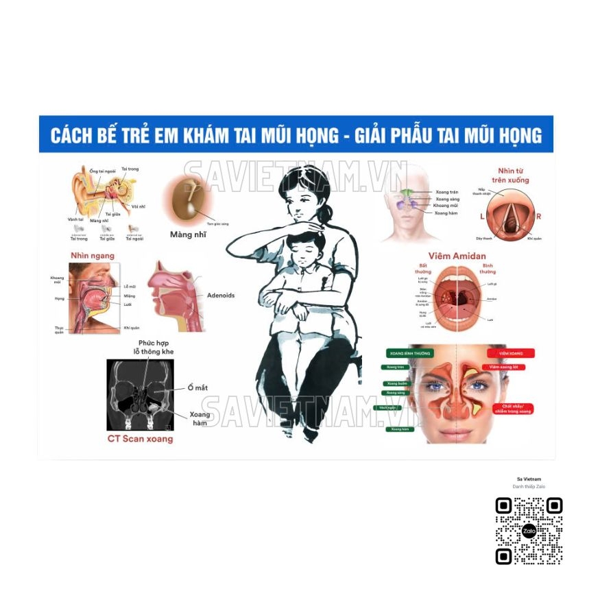 Tranh Cách bế trẻ em khám tai mũi họng (giải phẫu tai mũi họng) chất liệu decal